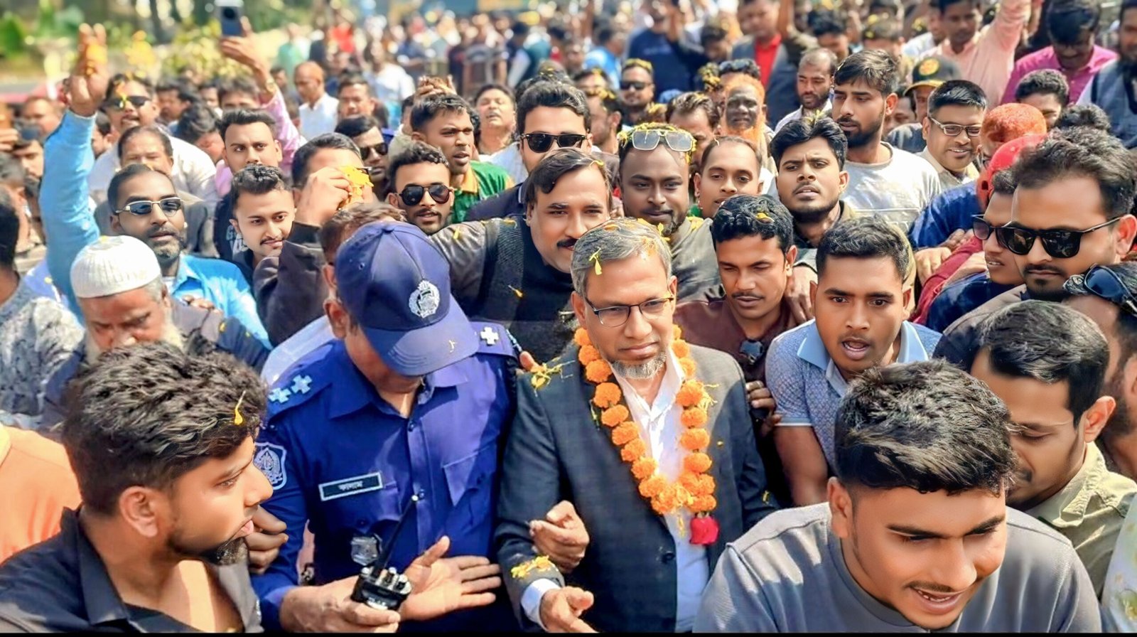 সকাল ১১টার দিকে কাছিকাটা টোলপ্লাজা এলাকায় শত শত নেতা-কর্মী ও সমর্থক ফুল দিয়ে তাকে স্বাগত জানান। পরে একটি বর্ণাঢ্য মোটরসাইকেল শোভাযাত্রার মাধ্যমে চাঁচকৈড় হয়ে গুরুদাসপুরের প্রধান প্রধান সড়ক প্রদক্ষিণ করে তাকে নিজ গ্রামে নিয়ে যাওয়া হয়। পুরো পথজুড়ে উৎসবমুখর পরিবেশ বিরাজ করে।