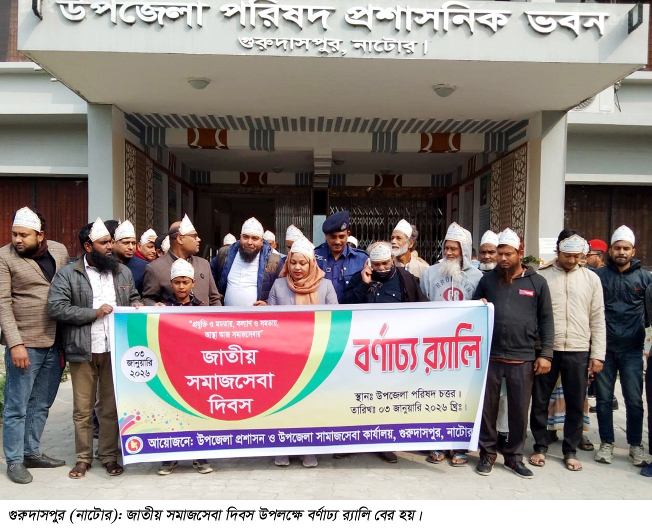 জাতীয় সমাজসেবা দিবস উপলক্ষে গুরুদাসপুর উপজেলা প্রশাসন ও উপজেলা সমাজসেবা কার্যালয়ের আয়োজনে বর্ণাঢ্য র্যালি ও আলোচনা সভা অনুষ্ঠিত হয়েছে।