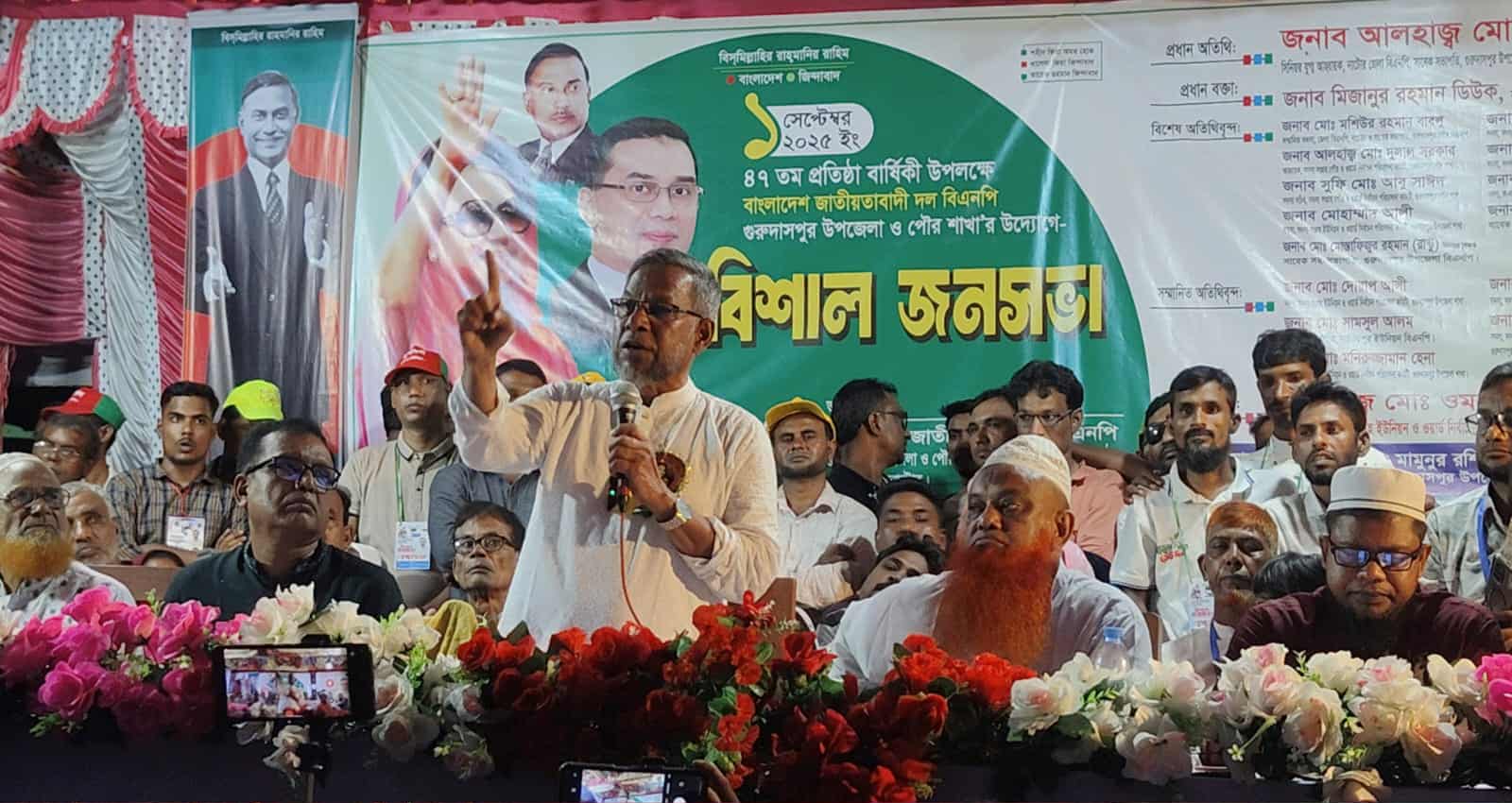 নাটোরের গুরুদাসপুরে বাংলাদেশ জাতীয়তাবাদী দল বিএনপির গৌরব, ইতিহাস ঐতিহ্য সংগ্রাম ও সাফল্যের ৪৭ তম প্রতিষ্ঠা বার্ষিকী উপলক্ষে জনসভা অনুষ্ঠিত হয়েছে।