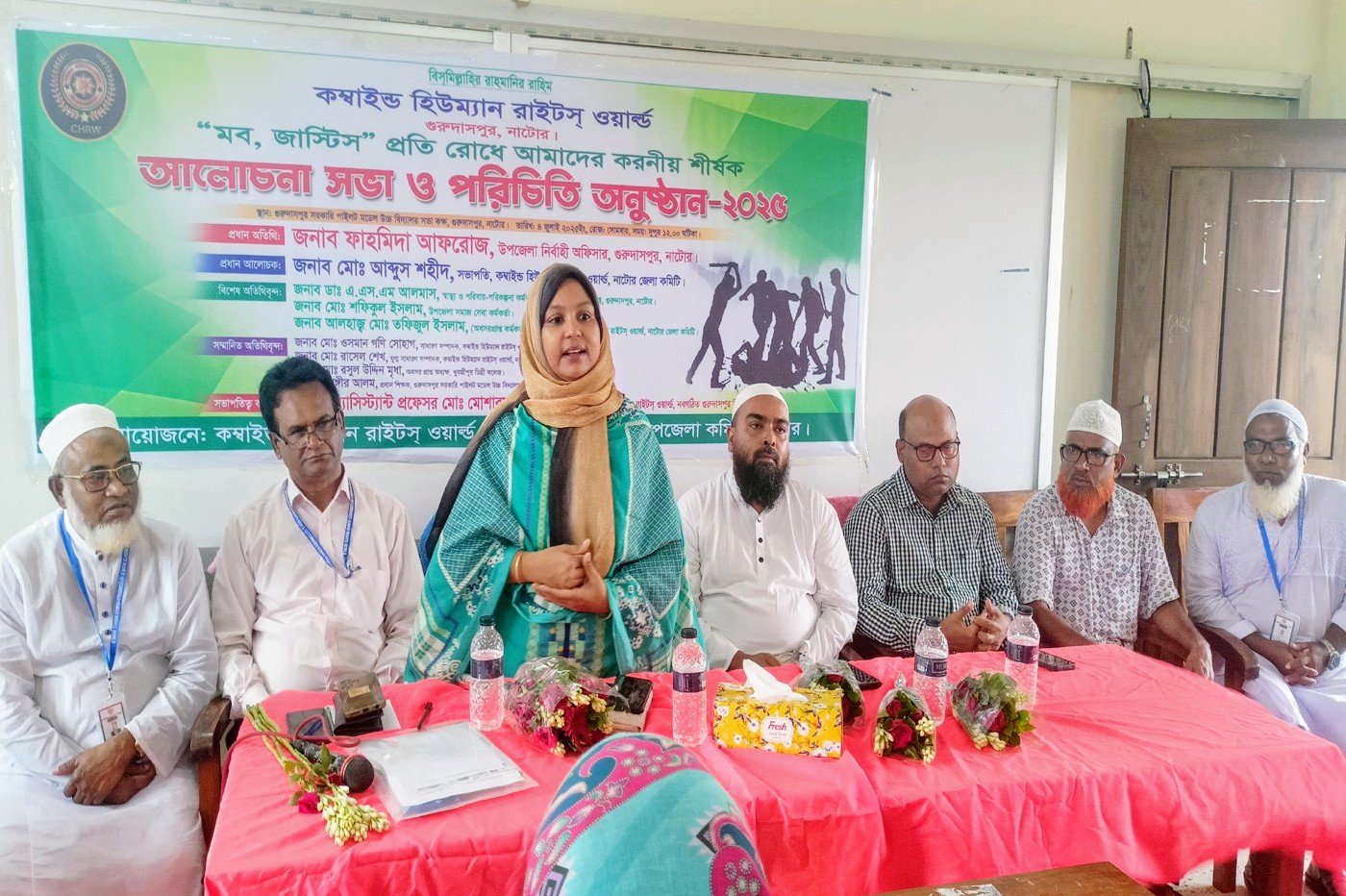 নাটোরের গুরুদাসপুরে “মব জাস্টিস প্রতিরোধে আমাদের করণীয়” শীর্ষক আলোচনা ও পরিচিতি সভা অনুষ্ঠিত হয়েছে। সোমবার দুপুরে কম্বাইন্ড হিউম্যান রাইটস্ ওয়ার্ল্ডের নবগঠিত উপজেলা কমিটির আয়োজনে গুরুদাসপুর পাইলট হাইস্কুল সভা কক্ষে এ অনুষ্ঠান হয়।