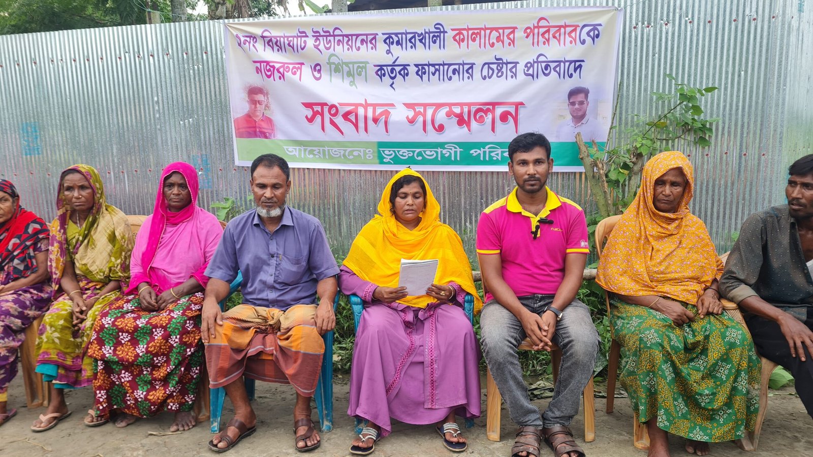 উপজেলার বিয়াঘাট ইউনিয়নের কুমারখালী চরপাড়া গ্রামে আবুল কালাম ও তার ছেলে রাকিবুল হাসান সোহাগকে বিভিন্নভাবে হুমকি ধামকি দেয়ায় নিরাপত্তা দাবী করেছেন তারা। এর প্রতিবাদে প্রতিবেশী ওয়ার্ড আওয়ামীলীগের সেক্রেটারী নজরুল ইসলাম ও তার ছেলে শিমুলের বিরুদ্ধে শুক্রবার সকালে সংবাদ সম্মেলন করেন তারা।